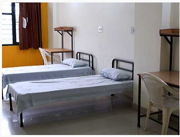 In a room 3 inmates with attached bathroom & hostel provides a cot, a mattress, one set of bed sheet and a pillow cover, a study table, a chair and a cupboard for each student. Every hostel has solar heated water facility, common water cooler, common TV room, etc.